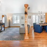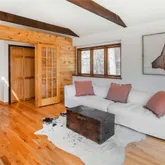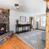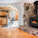 - Room Description: Rock on fireplace wall is from the property. Decorative wood beam from trees on property, not structural. Wood floors