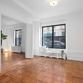 210 Riverside Drive is a full-service prewar co-op built in 1909 by Schwartz & Gross and is located across from the Joan of Arc monument in Riverside Park. The building has been featured as a backdrop in various films, and the recently restored marble lobby boasts Tiffany-style stained glass, coffered ceilings, and a manned elevator with wrought-iron doors from 1910. The building has a part-time doorman, live-in super, bike room, central laundry, and storage. Pets welcomed.