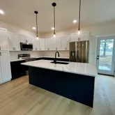 Brand new and ready for you! Built in 2025, this open floor plan welcomes you with a spacious and airy feeling, perfect for modern living. The heart of the home is the large kitchen, featuring pendant lighting over the center island with a deep sink, navy blue lower soft-close cabinets paired with elegant white upper cabinets, sleek quartz countertops, and matching stainless steel appliances with Wi-Fi capability. A door from the kitchen leads you to a cozy back patio, ideal for outdoor entertaining!...Brand new and ready for you! Built in 2025, this open floor plan welcomes you with a spacious and airy feeling, perfect for modern living. The heart of the home is the large kitchen, featuring pendant lighting over the center island with a deep sink, navy blue lower soft-close cabinets paired with elegant white upper cabinets, sleek quartz countertops, and matching stainless steel appliances with Wi-Fi capability. A door from the kitchen leads you to a cozy back patio, ideal for outdoor entertaining! The luxurious master bedroom suite offers a private bathroom retreat with pocket door, linen closet, 7x8 walk-in closet, double sinks & mirrors, beautiful onyx vanity top and shower surround, and dual showerheads with rainfall for a spa-like experience. The 19x19 drywalled and painted two-car attached garage comes with an overhead opener, floor drain and floored garage with attic access for additional storage space. Situated on a desirable corner lot, this home includes two additional bedrooms, another full bath, entry coat closet, all electric home with 200 amp electric, stylish lighting and tons of outlets throughout! This new construction home offers everything you need all on one level!