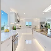 - Kitchen: Cooktop - Gas, Countertop - Granite, Countertop - Solid Surface / Corian, Dishwasher, Island, Oven - Built-In, Refrigerator