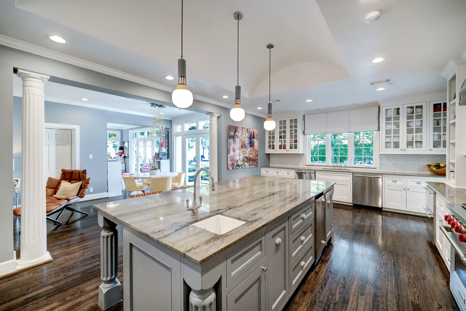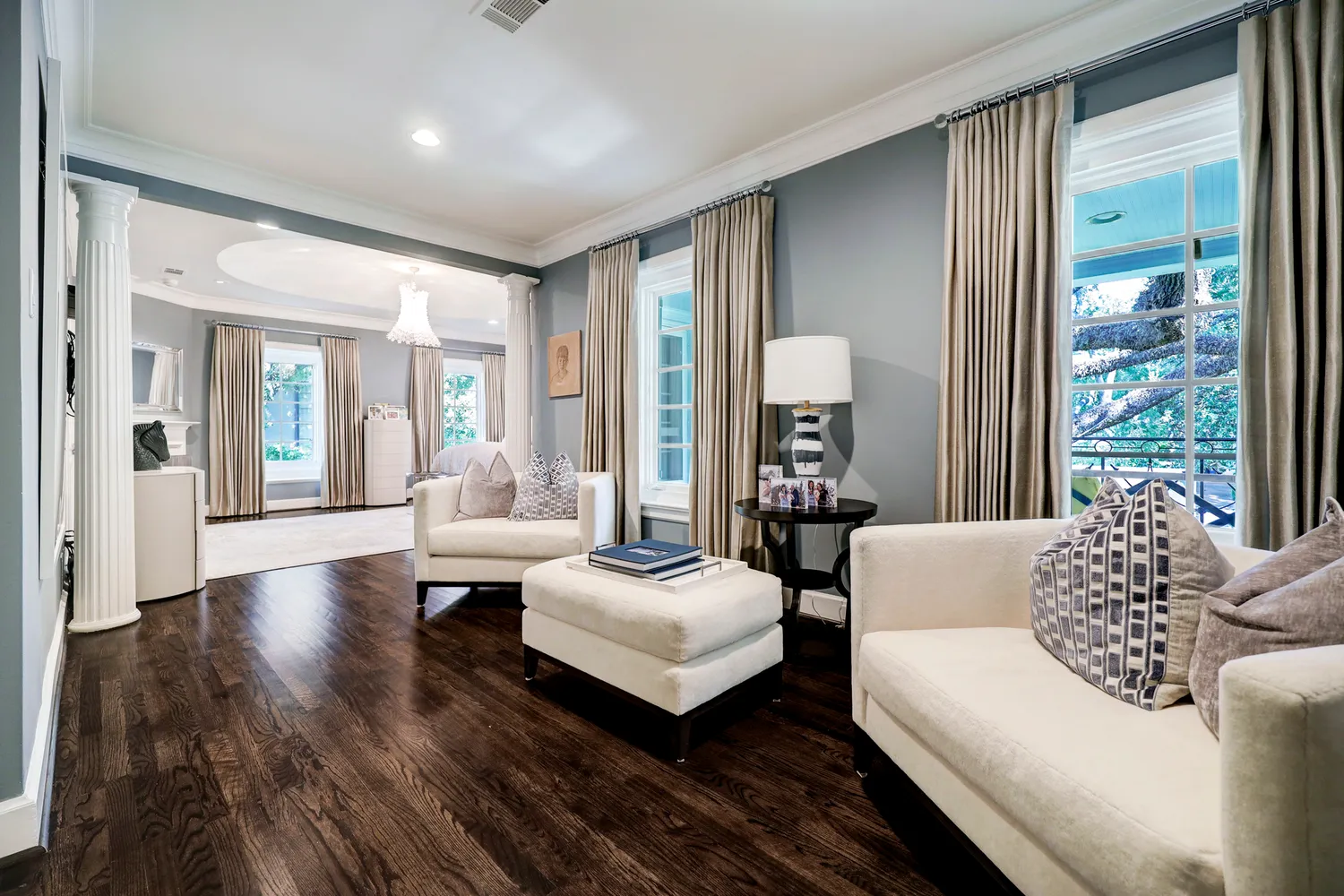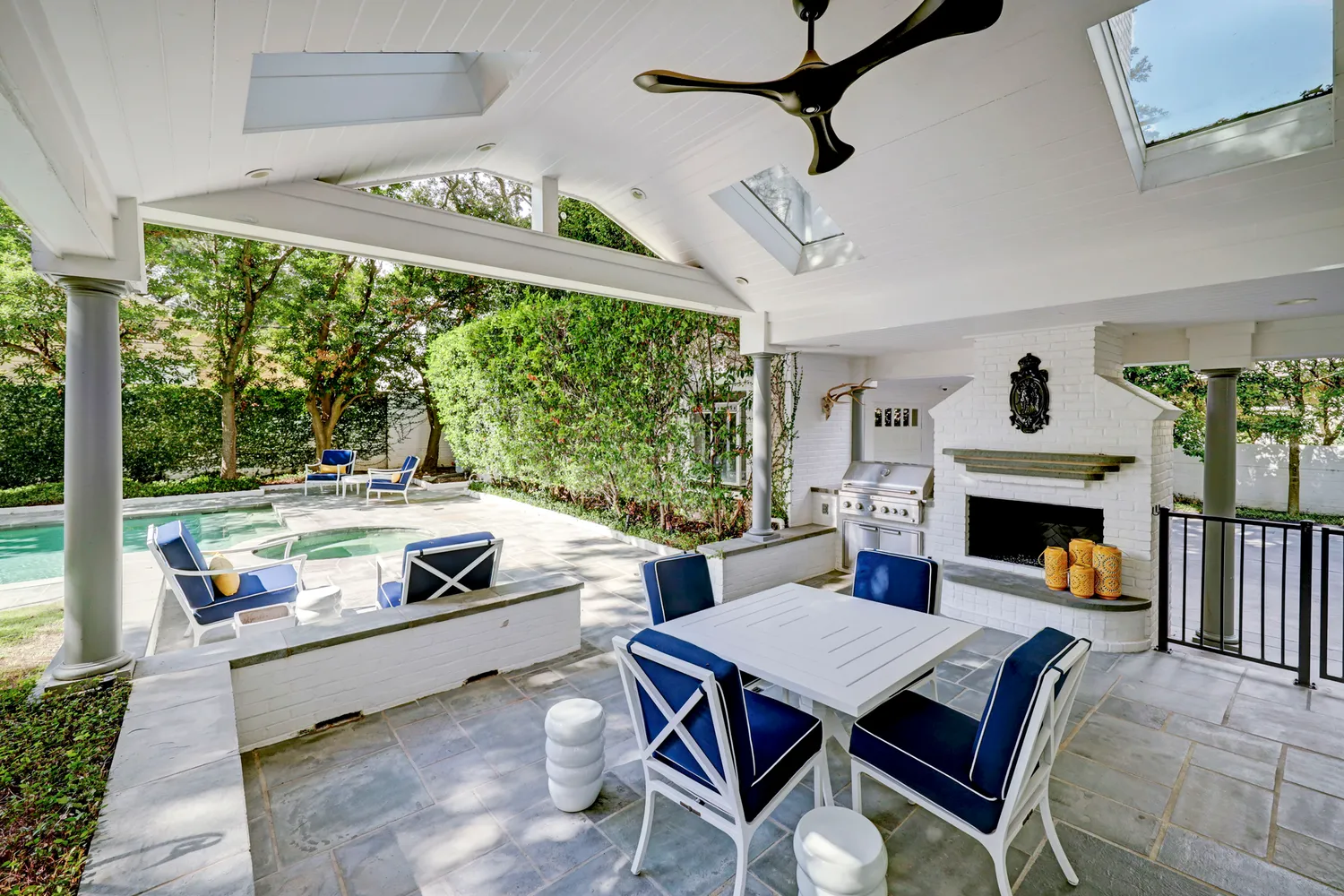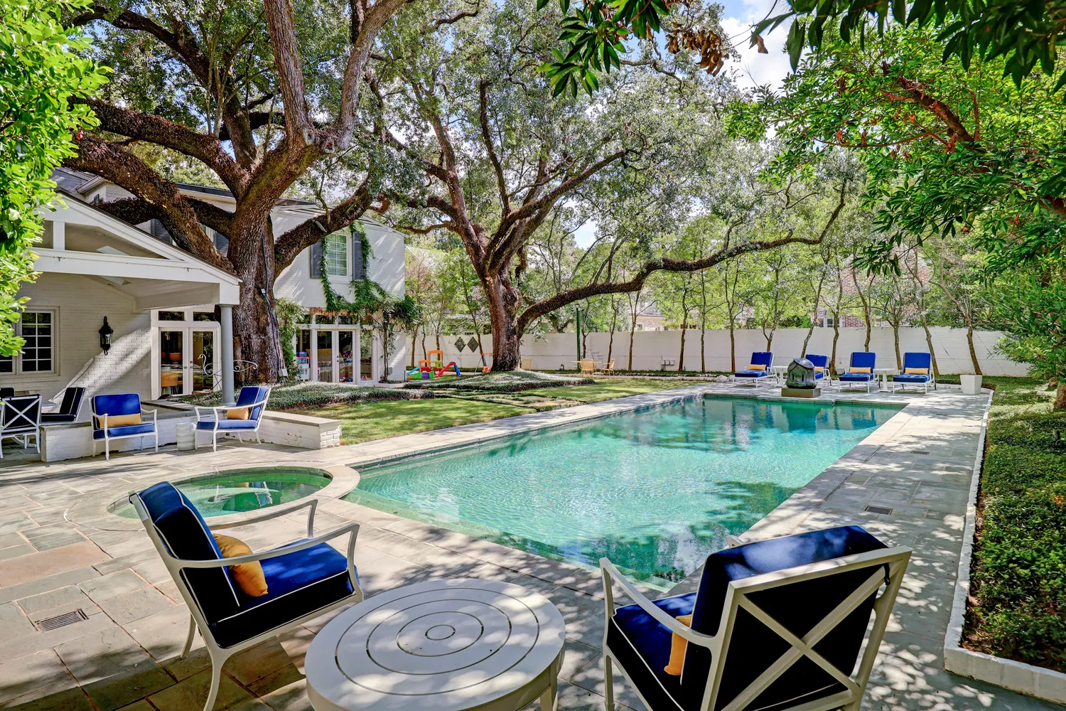 An exemplary River Oaks home on a spectacular 17,869 sq ft lot, this gracious home has been updated to today's lifestyle. A warm sense of Southern hospitality is invoked by expansive front porches on the ground and upper levels of the home. Inside, the home seamlessly marries sophistication and functionality. The chef's kitchen features top-tier appliances and opens to a breakfast room, sitting room and sun room - all with views of the incredible backyard. The formal dining sets the stage for lavish...An exemplary River Oaks home on a spectacular 17,869 sq ft lot, this gracious home has been updated to today's lifestyle. A warm sense of Southern hospitality is invoked by expansive front porches on the ground and upper levels of the home. Inside, the home seamlessly marries sophistication and functionality. The chef's kitchen features top-tier appliances and opens to a breakfast room, sitting room and sun room - all with views of the incredible backyard. The formal dining sets the stage for lavish dinner parties, while the formal living and library provide space for hosting and relaxation. For moments of casual reprieve, there are additional laid-back living areas to unwind in. Upstairs is the primary suite with a large ensuite bathroom and three spacious secondary bedrooms. The vast, tree-canopied lot provides a plethora of amenities, which include oversized guest quarters above the 3 car garage, a sparkling pool, a brick patio, an outdoor kitchen, and tons of green space for play.