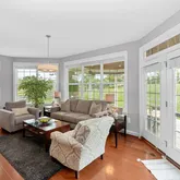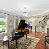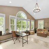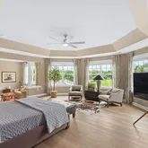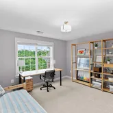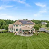 Additional luxuries include a sunlit conservatory, a cozy library with built-in bookcase and storage, and a finished lower level with a wet bar, exercise area, and a state-of-the-art sound-proofed home theater with a 110-inch screen, motorized recliners, and 7.2 surround sound. The conservatory is currently used as a home office but it can easily be converted into a main level bedroom. Modern comforts such as a 3-zone central heating/cooling, each controlled by wi-fi enabled auto-thermostats, ensure climate control comfort throughout the seasons. Your indoor comfort is significantly improved by the application of UV film on all windows, effectively blocking harmful UV rays and reducing the fading and sun damage to carpets and furniture. A Tesla wall charger within the 3-car garage conveys with the property, adding to its modern conveniences.