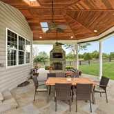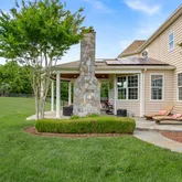 The outdoor amenities are equally impressive, including a fully landscaped front and rear yard. In addition, the backyard features a covered slate patio with a large stunning stone fireplace and retractable sunshades, and an outdoor kitchen ideal for alfresco dining and entertaining. Beyond the patio, the large back lawn is ideal for a future swimming pool and/or putting green. A 16-zone in-ground sprinkler system keeps your entire lawn and landscaping well maintained.