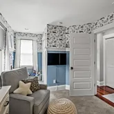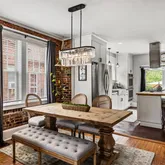 Welcome to this thoughtfully designed 4-bedroom, 2-bath home blends character with modern convenience, offering a warm and inviting space for everyday living and effortless entertaining. Original hardwood floors and stained glass windows bring timeless charm, while custom cabinetry and an exposed brick wall add personality to the open living and dining areas.