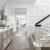 draperies, and window coverings span throughout the entire home. Dramatic wainscot in the