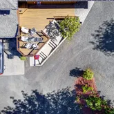 - Exterior Features: Covered Deck, Covered Patio, Deck, Fire Pit, Gas Hookup, Guest Quarters, Outbuilding, Patio, Private Road, Raised Beds, RVParking, RVBoat Storage, Second Garage, Security Lights, Tool Shed, Workshop, Yard