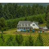 Views! Live the vineyard lifestyle! Spectacularly sited on a hilltop in the Willamette Valley, this serene and private 5.8 acre property offers stunning 360-degree views, perfect for sunrise and sunset viewings. The gracious, custom-built home offers an inviting wrap-around front porch, perfect for letting the hours pass by with family and friends while enjoying wine from your own grapes & indulging in the breathtaking and inspiring vineyard and valley views. Featuring picture-perfect windows flooding...Views! Live the vineyard lifestyle! Spectacularly sited on a hilltop in the Willamette Valley, this serene and private 5.8 acre property offers stunning 360-degree views, perfect for sunrise and sunset viewings. The gracious, custom-built home offers an inviting wrap-around front porch, perfect for letting the hours pass by with family and friends while enjoying wine from your own grapes & indulging in the breathtaking and inspiring vineyard and valley views. Featuring picture-perfect windows flooding rooms with natural sunlight and offering views from every window, the charming farmhouse offers generous living spaces including a spacious primary suite with a full bath and walk-in closet on the main floor. Upstairs, you'll find two additional bedrooms sharing a second full bathroom. The kitchen boasts abundant counter and storage space, an island for guest seating, and a vineyard view through an oversized window. Share meals with family and friends in the dining room offering panoramic views and a slider to a spacious deck. A large multi-purpose room complete with half bath offers potential as a private apartment or mother-in-law suite with half bath. The property is ideally situated with southeastern and western facing slopes with Bellpine/Jory soil, ideal for growing Pinot Noir grapes. This pristine vineyard offers high density 5X5 layout and produces approximately 12-18 tons of fruit annually, & approximately 750 cases. Dijon 777, 115, 667 and Pommard, Wadenswil, Pinot Gris, Chardonnay. Additionally enjoy blueberries, and lovely fruit orchard. The 4 bay double deep garage has been converted to a tasting room, barrel room and winery. This can easily be converted back to a great space for all your toys and hobbies. Otherwise, this multi-purpose property offers an amazing opportunity to make your winemaking dreams a realty with the award winning wines that showcase the unique terroir of the Willamette Valley. Fiber Optics coming soon! 20 min to Corvallis,30 min to Eugene.