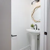 Just off the kitchen, you’ll find a recently renovated powder room with modern finishes and custom tiling. At the back of the home is a sunlit, flexible bonus space — perfect for relaxing, gathering, or use as a playroom — with direct access to your private outdoor patio and parking space.