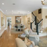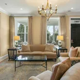 Entry into the combined living and dining space provides a warm and spacious welcome. The main level also includes a chef's kitchen with marble countertops and island...Fully renovated, semi-detached townhouse in the heart of Georgetown with abundant natural light and high ceilings throughout. Boasting a particularly wide lot and garden, and fabulous front porch, this elegant 4 BR/3.5 BA home offers sophisticated city living both indoors and out. Fully finished lower level with front and rear egress.