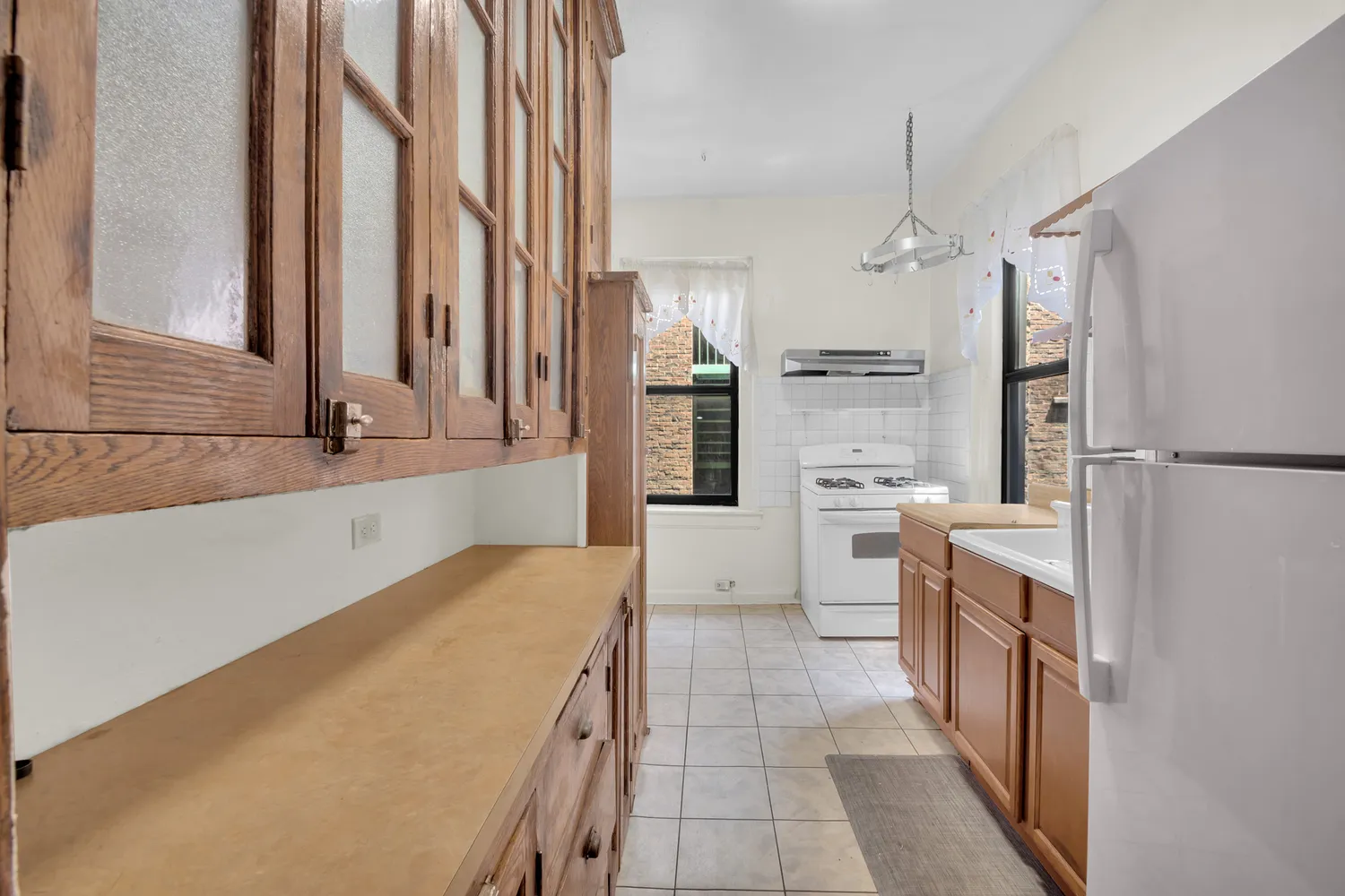 This prewar building is...This lovely Sun-filled Prewar 2-Bedroom features a spacious Living/Dining room and a large eat-in-kitchen with original floor to ceiling wood cabinets offering a great deal of storage space. This apartment is charming with a higher than usual closet and door frames. Throughout the apartment, there are oak hardwood floors and high ceilings. Although the apartment is facing the courtyard it is quiet and gets very good light. The layout is classic and the rooms are a good size.