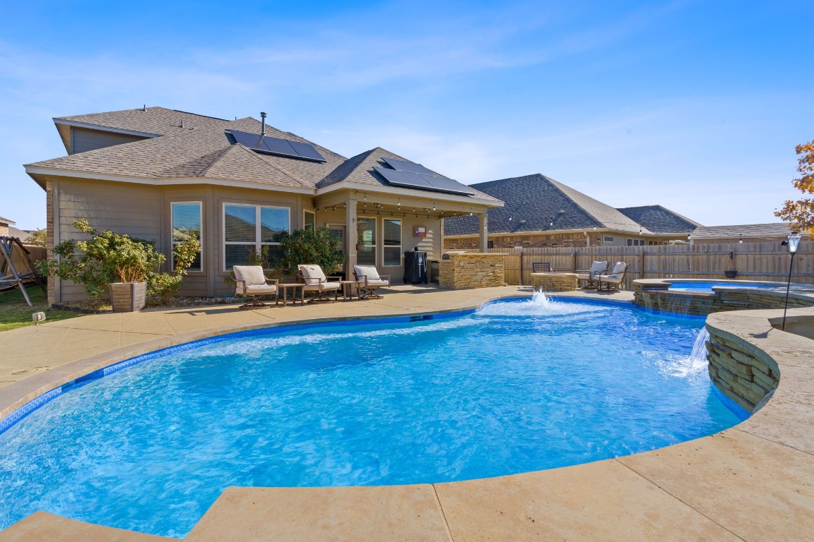 Presenting this charming 4-bedroom, 3-bath home with an attached garage (2 spaces) and room for 4 parking spots. Outside, discover a landscaped yard with trees, a garden, and a refreshing, self controlled temperature pool with all around fountains PLUS it self cleans! Noteworthy features include high ceilings, granite counters, a primary bedroom on the main, a spacious office, a large loft are upstairs, and smart home tech. Enjoy outdoor living with a barbecue area, gas grill, and fire pit. This...Presenting this charming 4-bedroom, 3-bath home with an attached garage (2 spaces) and room for 4 parking spots. Outside, discover a landscaped yard with trees, a garden, and a refreshing, self controlled temperature pool with all around fountains PLUS it self cleans! Noteworthy features include high ceilings, granite counters, a primary bedroom on the main, a spacious office, a large loft are upstairs, and smart home tech. Enjoy outdoor living with a barbecue area, gas grill, and fire pit. This property seamlessly combines style, functionality, and a pool for ultimate relaxation. Explore flexible financing options, including Buyer Assistance Programs, Cash, Conventional, FHA, and VA Loan, your dream home is closer than you think!