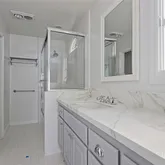 - Room Bathroom Features: Bathtub, Shower, Shower in Tub, Double Sinks In Master Bath, Privacy toilet door, Separate tub and shower, Stone Counters, Upgraded, Vanity area, Walk-in shower