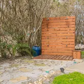 -Freshly stained exterior decks and paint on railings