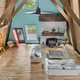- Interior Features: Carpet, Ceiling Fan(s), Exposed Beams, Floor Plan - Open, Spiral Staircase, Stall Shower, Stove - Wood, Wood Floors