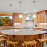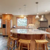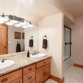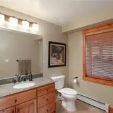 - Room Description: Shower/Tub combo, sliding glass doors, double sink vanity with solid granite top, knotty alder cabinetry, private commode