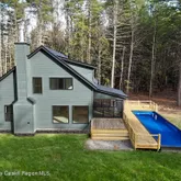 Enter through the mudroom, the perfect place to drop your boots and dog leash, and be greeted by soaring vaulted ceilings and a wall of windows that flood the space with natural light. The stone fireplace serves as a centerpiece, creating that quintessential cozy Hudson Valley vibe. The open floor plan flows effortlessly from the living area to the dining and kitchen spaces, making it ideal for both everyday living and entertaining. The kitchen is a chef's dream with a high-end Bertazzoni range and custom cabinets. Other quality finishes include wide plank wood floors, custom lighting, and hand-crafted tiles that add a touch of artisanal charm.