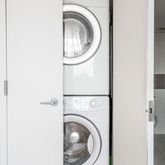 Head upstairs to the mezzanine floor loft (7.5’ ceiling height) where you’ll find a vented in-unit washer/dryer, a full bathroom, and closet. The loft space is currently configured as a second bedroom due to the addition of a pressurized wall with two windows and a door.