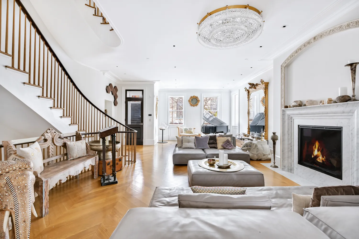 The Convent of the Basilica of St. Patrick's Old Cathedral, this historic landmark dates back to 1826. Positioned on the most beautiful tree-lined section of Prince Street, in the traditional artist haven of the picturesque and most centrally located downtown neighborhood of SoHo. The gorgeous five-story and supremely rare for SoHo (and rare for downtown in general) sun-filled Federal Style mansion faces North and is uniquely set back from the street, romantically containing a magnificent outdoor, South-facing garden. While the inside has been, in every facet, lovingly renovated into one of the most detailed and graceful homes in Manhattan, the walls themselves are over a foot thick and made of stone that soundproofs the inside so that the space boasts a rare thing for New York City: silence.