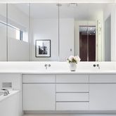 Sunlit and dramatic, the 53.5’ great room opens directly through a one-of-a-kind sliding wall of windows to the wrap-around terrace, which is an oasis in the heart of SoHo. Complete with an Endless Pool and a beautifully landscaped garden with mature trees, this is truly a private park in the sky. Tucked away from the grand entertaining space, the custom top-of-the-line Bulthaup kitchen features stainless steel cabinets and Thassos marble countertops and is outfitted with Miele and Gaggenau appliances.