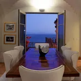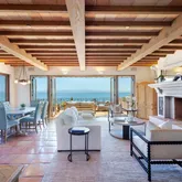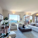 Step into the spacious living room and dining area with five sets of French Doors with balconettes that open to sweeping ocean or garden views.