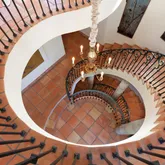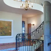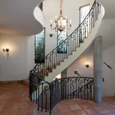 This artfully designed 4 Bedroom, 4 1/2 Bath estate exudes casual elegance in one of the most coveted gated enclaves in Hope Ranch. Charming garden walkway welcomes you to a grand entry with impressive three-story high spiraled iron staircase.