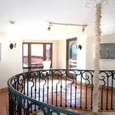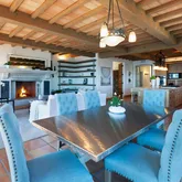 Arched ceilings are the focal point of the gracious dining area and in the living room an impressive antique French stone fireplace exudes a cozy ambiance.