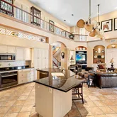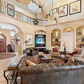 - Interior Features: Cathedral Ceiling(s), Ceiling Fan(s), Crown Molding, Eating Space In Kitchen, High Ceilings, Kitchen/Family Room Combo, Living Room/Dining Room Combo, Primary Bedroom Main Floor, PrimaryBedroom Upstairs, Split Bedroom, Thermostat, Vaulted Ceiling(s), Walk-In Closet(s), Wet Bar, Window Treatments
