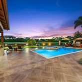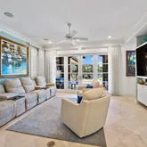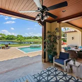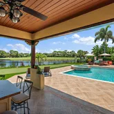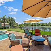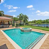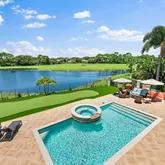 This amazing home sits on one of the finest lots in Trump National - Jupiter. Enjoy wonderful outdoor spaces overlooking a large lake and the 3rd hole of the Jack Nicklaus signature golf course, while entertaining friends and family. Electric screens provide the perfect space to open doors to the family room, and relax in the fresh air. The master suite, including an expanded area for a home office, and one other bedroom occupy the first floor, while two guest suites make up the second floor. The...This amazing home sits on one of the finest lots in Trump National - Jupiter. Enjoy wonderful outdoor spaces overlooking a large lake and the 3rd hole of the Jack Nicklaus signature golf course, while entertaining friends and family. Electric screens provide the perfect space to open doors to the family room, and relax in the fresh air. The master suite, including an expanded area for a home office, and one other bedroom occupy the first floor, while two guest suites make up the second floor. The kitchen, dining area, family room, and living room have been totally renovated with a warm palette of coastal colors. Both Full Golf and Social/Spa memberships to the club are available, but not mandatory.