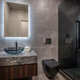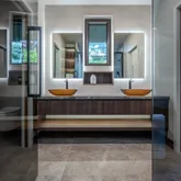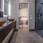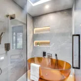 - Bath Features: Dual Flush Toilet, Multiple Shower Heads, Radiant Heat, Shower Stall(s), Stone, Tile