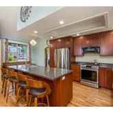 • Kitchen Appliances: Dishwasher, Disposal, Free Standing Gas Range, Free Standing Refrigerator, Island, Microwave, Pantry, Solid Surface Countertop, Stainless Steel Appliance