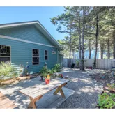Pending - accepting back up offers. Looking for close-in privacy, easy to maintain, one level newer home just steps to the ocean and backing a forested state park? Look no further! This home is located on a privately owned, paved, dead end street. Just doors away from the famous 804 trail, where it? s a short walk along ocean bluffs to miles of sandy beach or into the town of Yachats. Intentionally designed and constructed on a flat lot in 2016 with a high attention to detail & focus on conservation,...Pending - accepting back up offers. Looking for close-in privacy, easy to maintain, one level newer home just steps to the ocean and backing a forested state park? Look no further! This home is located on a privately owned, paved, dead end street. Just doors away from the famous 804 trail, where it? s a short walk along ocean bluffs to miles of sandy beach or into the town of Yachats. Intentionally designed and constructed on a flat lot in 2016 with a high attention to detail & focus on conservation, and has been lovingly cared for by the original owners. The home welcomes you with a large covered front porch and leads you through the front entry to the sizable great room with tall ceilings throughout and high vaulted, beamed ceilings in the living room. Skylights and large windows bring in lots of natural light and the sounds of the ocean. Enjoy the connection of spaces with the open floor plan consisting of the sizable kitchen, w/ stainless steel appliances, gas stove and solid surface countertops & ample cabinets for storage, multiple sitting areas w/ gas fireplace & gorgeous glass tile surround, complete with views of the ocean. Indulge in the primary suite w/ large closet, large windows & bathroom w/ glass vessel sink, walk-in shower. 2nd bedroom, great for den/ office & guests. Hardwood floors throughout, with Marmoleum in the laundry & bathrooms. Large 2 car garage. Beautiful, low maintenance landscaping in the front and fully fenced rear yard spaces. Rear yard w/ concrete patio, large deck area, natural area and wired for a hot tub.