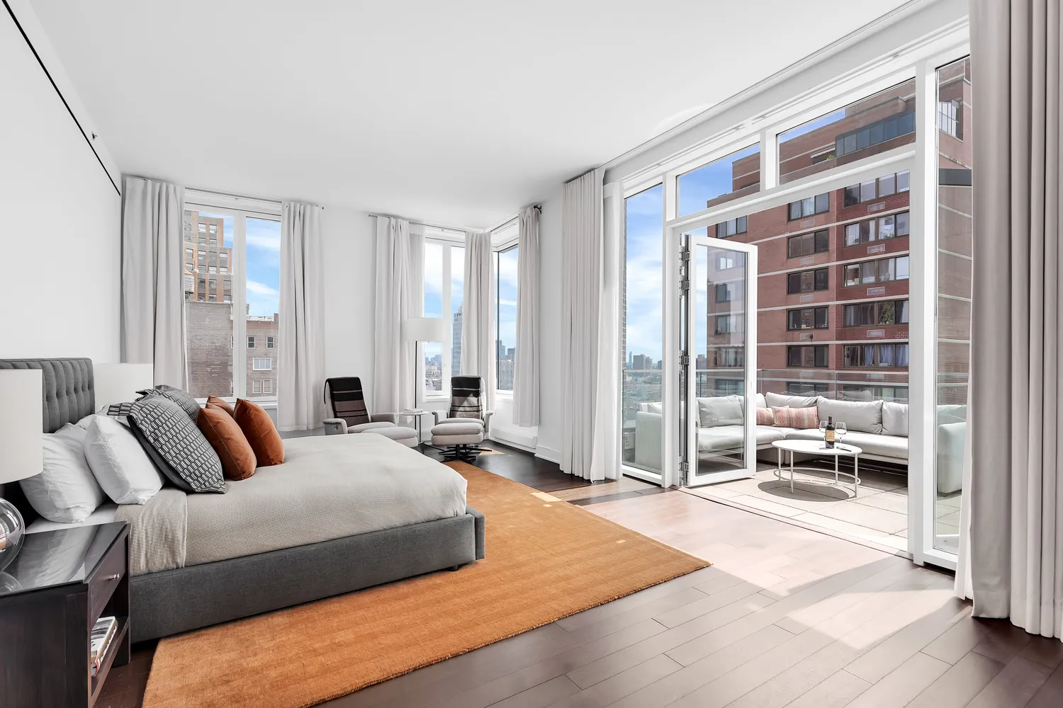 This stunning Tribeca Penthouse on a cobblestone street features breathtaking views, a private outdoor terrace, and 2447 sq. ft. of space with 3 bedrooms, 3.5 bathrooms.