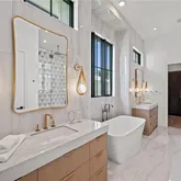 The open-concept layout features a spacious Great Room, a custom 5' x 14' kitchen island, and a temperature-controlled wine room. The first-floor Owner’s Suite is a private retreat with a spa-like bath showcasing premium finishes and a...Waterside Builders presents this exceptional new construction home in the sought-after Park Shore community. Offering 5 bedrooms, 7 baths, and 5,181 sq. ft. of air-conditioned living space, this residence combines luxury design with quality craftsmanship throughout.