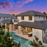 The open-concept layout features a spacious Great Room, a custom 5' x 14' kitchen island, and a temperature-controlled wine room. The first-floor Owner’s Suite is a private retreat with a spa-like bath showcasing premium finishes and a large custom closet. The Den/Fifth Bedroom provides flexibility for a home office or guest suite. Upstairs, a 22' x 22' bonus room allows for a second family room, media space, or game room, and is complemented by three additional bedrooms and a balcony overlooking the pool and providing amazing sunsets.