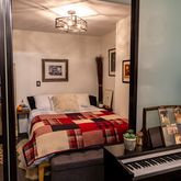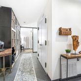 Explore down the handcrafted, sculptural staircase, and be delighted with an expansive lounge perfect for relaxing or playtime activities. A second sleeping area is artfully tucked away in a cozy corner. However, the crowning jewel is the zen-like 355 sf garden accessed from the lounge. Enjoy alfresco dining and cultivate your inner green thumb with mature plantings. Additional features include 9' ceilings, washer/dryer, built-ins, and private storage.