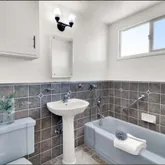 - Bathroom: Full on Ground Floor, Shower over Tub - 1, Stall Shower, Stone, Tile, Tub in Primary Bedroom, Updated Bath