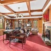 - Interior Features: Coffered Ceiling(s), Closet/Cabinets - Custom Built, Ceiling Fan(s), Closet, Bathroom - With Shower Stall, Bathroom - Tiled With Shower Stall, Library, Bedroom, Bathroom, Media Room, Wired for Surround Sound