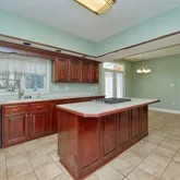 Step inside to a grand foyer with an elegant stairway that sets the tone for this remarkable home. The sunken living room, featuring hardwood floors, a wet bar, and a vaulted ceiling, invites relaxation and entertainment. The kitchen is a chef's delight, complete with a center island cooktop, ample table space and abundant cabinet storage. This home offers flexible living arrangements, perfect for guests or an in law or au pair suite. There is a second kitchen which has direct access to the expansive deck and an upper level bedroom.