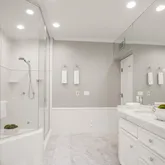 - Room Bathroom Features: Vanity area, Linen Closet/Storage, Shower, Shower in Tub