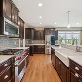 - Room Description: quartz, wolf gas range, farm sink, upgrade cabs