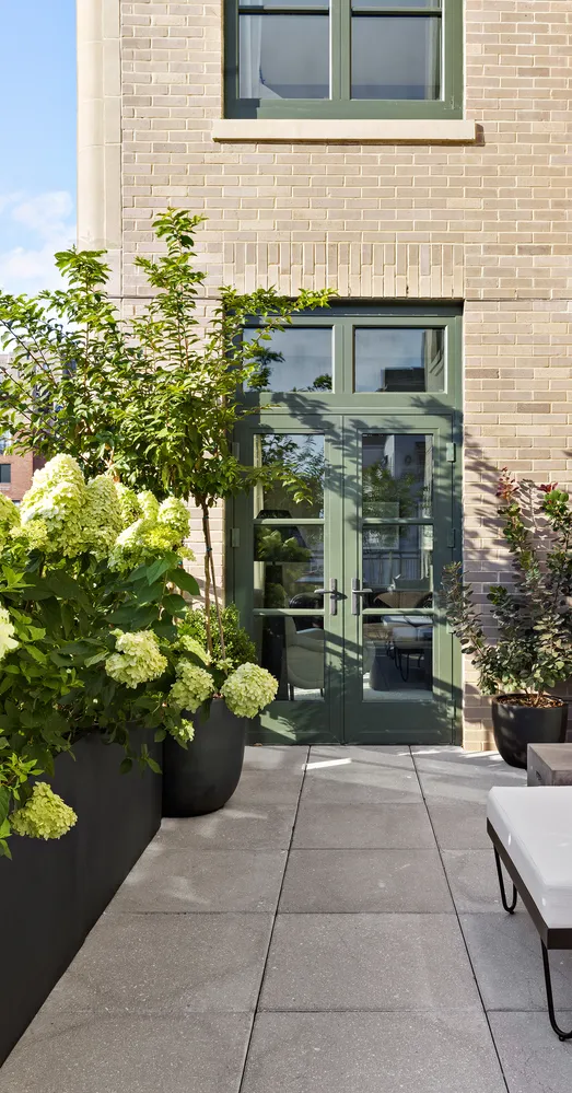 150 East 78th is a thoughtfully designed boutique building by Robert A.M. Stern Architects. Their timeless architectural approach is married perfectly to the interiors' prewar sensibility and Parisian flair of AD100 Hall of Fame designer Robert Couturier. The stately façade features distinctive handset Indiana limestone, patterned brick, and ornamental metalwork. Inspired by the neighborhood, Robert A.M. Stern Architects designed an exterior steeped in New York City Classicism. The 16-story building’s overall aesthetic is refined and distinguished, highlighted by arched windows, limestone pilasters, and rich green metal and glass conservatories. The canopied entrance, located on 78th Street, fits in beautifully with the neighboring townhomes and treelined street.