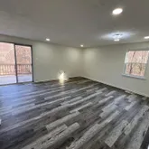 A bright, open-concept living area with walkout basement