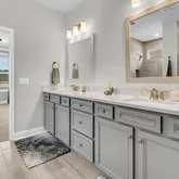 Modern conveniences abound with smart home automation, including a video doorbell, smart thermostat, irrigation control, touch kitchen faucet, and fiber internet. The home comes with peace of mind thanks to warranties that include 10-year structural coverage, 5-year protection plan against leaks, 2-year mechanical systems coverage, and 1-year overall coverage.