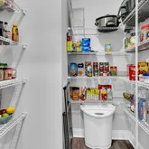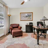 Homeowner upgrades add even more value, including a new refrigerator, wine chiller, ceiling fans, upgraded lighting, custom window treatments, and a new vanity with mirror in the powder room.