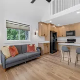 Welcome to your perfect home away from home! These charming 1-bedroom retreats offer everything you need for a comfortable and convenient stay. Villas can sleep 1 - 4 occupants. Each includes 1 bed (Private space) & 1 Lofted Area (Open Space/Upstairs) and 1 bath with a pullout sleeper. All are newly constructed and exceptionally finished with modern accents. From the front porch, enter into the cozy, open living space. The loft overlooks...Furnished unit-short term stays available! ASK FOR MORE INFO