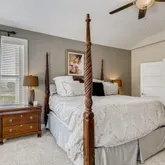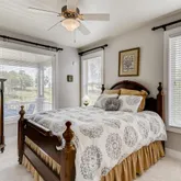 - Room Description: guest en-suite, carpet, lighted ceiling fan, tv mount, built-in bookshelf and cabinet, 5 x 5 walk-in closet