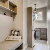 - Room Description: stack full size washer and dryer, cabinets, sink, countertop, mud room area off garage with seat and cubbies