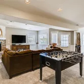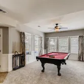- Room Description: carpet, lighted ceiling fan, currently has billiard table, custom board and batton through out game and media area