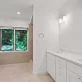 A convenient Home Office leads you to the spectacular Primary Bedroom with a vaulted ceiling and floor-to-ceiling windows. The recently renovated Primary Bathroom features a spa-like experience with a deep soak tub and double vanity.