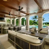 - Interior Features: First Floor Entry, Bar, Built-Ins, Closet Cabinetry, Cooking Island, Elevator, Fireplace, Foyer Entry, French Doors, Pantry, Volume Ceilings, Walk-In Closets, Wet Bar